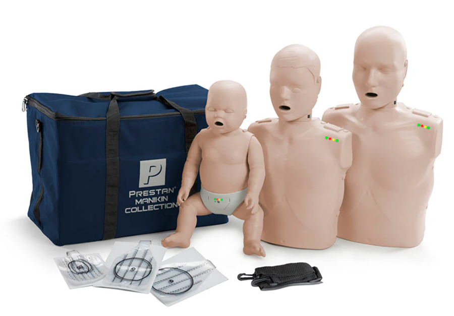 مانيكانات تدريب وأدوات محاكاة مقدمة من براندات عالمية تستخدم لتدريب الموظفين والفرق الطبية على الإسعافات الأولية وانعاش القلب الرئوي (CPR) وكيفية التعامل مع حالات الطوارئ المختلفة.